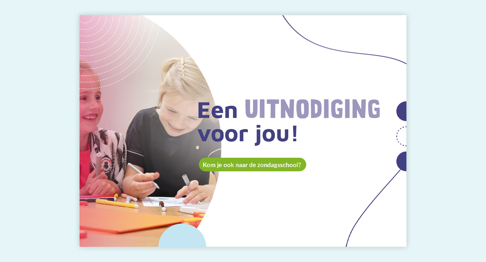 Een persoonlijk kaartje ontvangen is voor een kind altijd leuk. Daarom hebben we uitnodigingskaartjes om als zondagsschoolleidinggevenden de nieuwe kinderen uit te nodigen voor de zondagsschool.